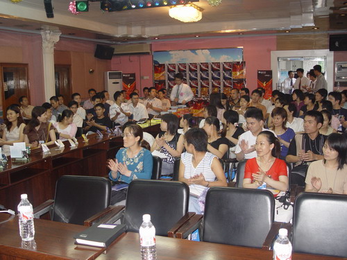 最讓人期待的是現(xiàn)場提問環(huán)節(jié),孫總和大家親密接觸,就大家關(guān)心的問題一一作出解答,經(jīng)銷商當(dāng)然不會(huì)放過這個(gè)機(jī)會(huì),提問一個(gè)接一個(gè),最后因?yàn)闀r(shí)間關(guān)系我們的帥哥主持不得不“殘忍”地結(jié)束提問環(huán)節(jié),把大家“趕”到餐廳共進(jìn)晚餐了.