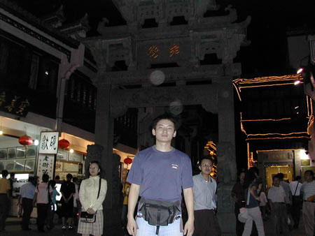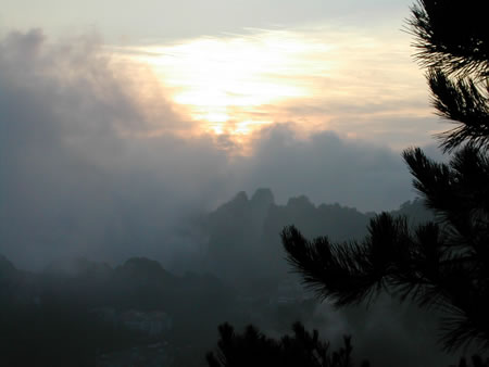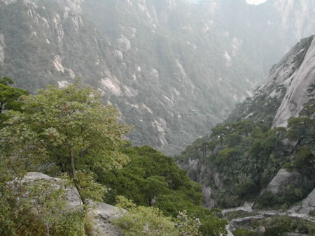 為了節省體力,大家一同坐纜車到達了玉屏峰,此峰可真是人山人海,寸步難移。圖中的松樹,既是大名鼎鼎的迎客松了。