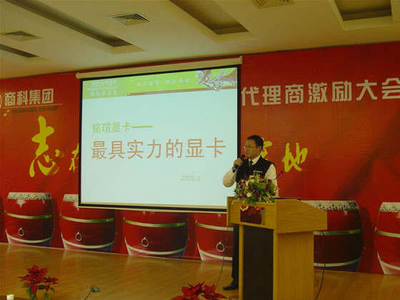 銘瑄產(chǎn)品經(jīng)理趙經(jīng)理進行《銘瑄---最具實力的顯卡》的詳細介紹,從銘瑄顯卡研發(fā)、銷售到廣告投放。說明銘瑄如何是最具實力的顯卡,現(xiàn)場掌聲不斷。