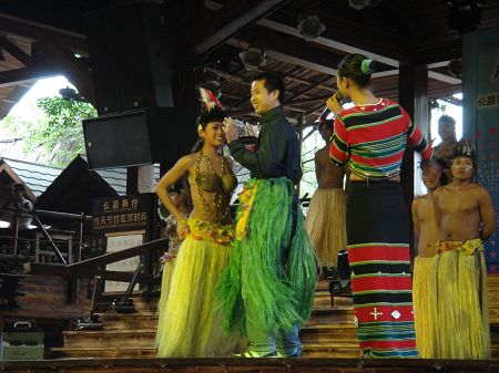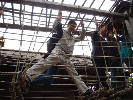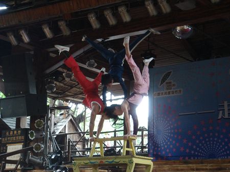 一不小心我們兩位可愛的同事被點名上臺表演了:),據說這個節目叫"娶親"