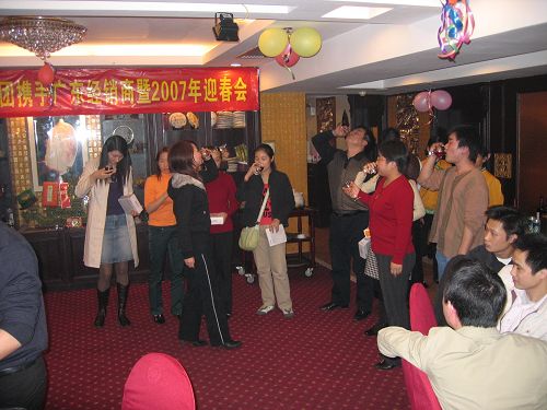 2月1日廣州商科為了答謝經銷商在過去的一年中給予的支持和厚愛,在廣武酒店舉辦了"商科集團攜手廣東經銷商2007年迎春會",與會的不僅有廣州的經銷商還有商科集團各事業部的經理.本次除頒發了"2006年度優秀個人貢獻獎" "2006年度優秀合作伙伴獎"外還進行了幸運大抽獎,現場氣氛異常熱烈……