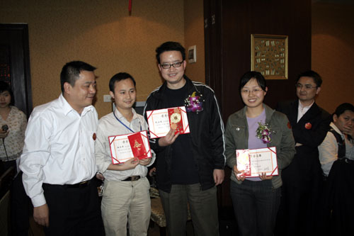 晚會開始前商科集團領導對本年度表現優秀的員工進行了嘉獎和表彰他們是:第四季度部門之星:技術部 :敖亞軍、業務部:吳翠、市場部:臧永剛,第四季商科標兵:財務部:羅春菊,第四季度銷售標兵 :田勇,2006年度杰出員工:馮燕蘭,優秀職能經理 :楊毅,優秀經理 : 邵清泉