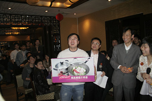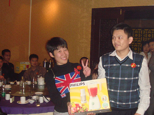 晚宴結束后,大會的最令人興奮的抽獎活動便拉開了帷幕。公司為本次大會準備包括現金大獎、名牌手表、高檔化妝品,小家電、數碼MP3、U盤在內的豐富獎品。