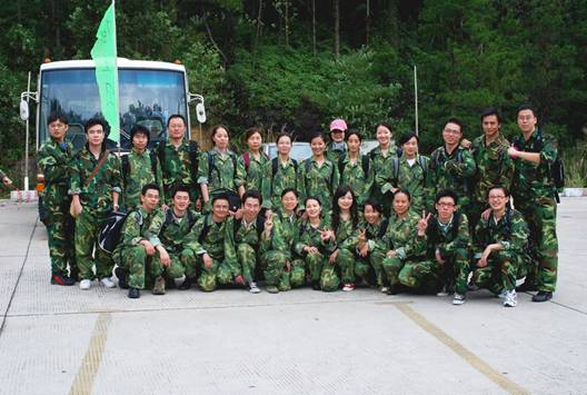 為了豐富員工的生活,同時加強同事之間的了解、信任和團結,商科集團于11月8號、9號兩天,在花都芙蓉度假村舉辦了戶外拓展活動。商科各地分公司部分同事及總部各部門全體員工參加了這次別開生面的活動。 這次活動安排了定向越野、排球、拔河、基地拓展等一系列的豐富多彩的內容。集休假放松、適度的探險、體育運動、拓展游戲等多種項目為一體,不僅使員工們得到了充分的休息,而且也讓大家從中學習和感受到在辦公室里沒有的體驗。 活動于11月8號的7點30分開始,全體員工按時到達廣州商科集團總部,光大銀行大廈門口集合,乘坐豪華旅游大巴前往位于花都的芙蓉度假村。 ![]() 圖說:商科全體員工搭乘豪華旅游大巴來到花都芙蓉度假村 在到達花都芙蓉度假村之后,首先入住酒店,稍事休息和調整。 10點整,全體員工再次集合,乘坐大巴來到山頂的拓展訓練基地。 在到達基地后,大家換上基地準備好的迷彩服,正式開始了為期兩天的拓展訓練活動。