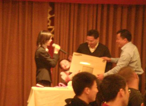 最后大獎是一臺32寸的顯示器,幸運之神會眷顧誰呢?馬上將揭曉....5,4,3,2,1,汕頭創捷林總,恭喜!
