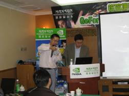 另外楊成先生還抽出本次培訓會的第一個大獎, 銘瑄9500GT高清版顯卡一片, 及NV精美腰包一個。