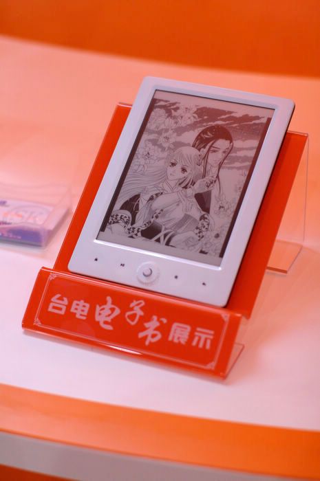 臺電K5電子是本次展會唯一的一款彩屏電子書。它采用了特殊的“半透反射式 LCD屏”不同于我們平時在MP4上看到的彩色TFT屏幕。“半透反射式 LCD屏”將每個顯示單元劃分出透光區(qū)與反射區(qū),不僅在黑夜可以實現(xiàn)背光照,而且在白天強光下,屏幕也能有良好的表現(xiàn)。