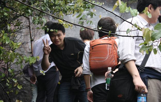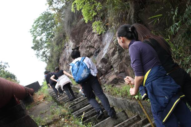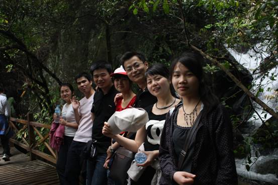 經(jīng)過一番跋山涉水,大家終于爬到了白水寨的9999級(最高點哦!),大家撐起笑臉留下值得驕傲的表情。大家看看大汗淋漓、筋疲力盡的我們,是不是都很棒!(掌聲ING)