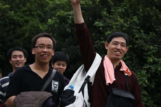 簡單的午餐后,兄弟姐妹們開始攀登白水寨“天南第一梯" 9999級石級,當(dāng)然不免俗的要在“天下第一梯”前面來張大合照,這個時候的我們一個個都精神奕奕的,嘿嘿!