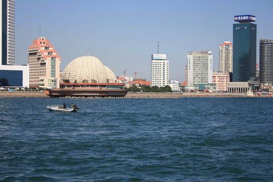 海上皇宮,海上皇宮是一座集游覽、娛樂、演出、餐飲于一體的旅游場所,投資一億多人民幣,整座建筑是由幾個四分之一的圓體組成的,共6層,地下一層,地上5層,整體用108根柱子支撐,建筑面積1.1萬平方米,它以一流的環境,五星級的服務,被列為青島餐飲特一級店。據說金龜子在這里舉行的婚禮。