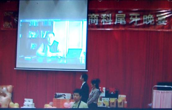 商科集團(tuán)總經(jīng)理孫武源先生的聲音響徹會(huì)場(chǎng),投影布上出現(xiàn)孫總為在座的各位經(jīng)銷(xiāo)商朋友致辭的畫(huà)面,DV畫(huà)面里孫總對(duì)2010年深圳商科的工作做出了肯定,對(duì)2011年商科的發(fā)展態(tài)勢(shì)表示樂(lè)觀,并祝福各位經(jīng)銷(xiāo)商朋友兔年大吉大利。大顯身手。財(cái)運(yùn)亨通。事業(yè)興旺。全家幸福!