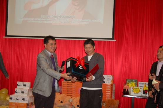 深圳分公司余經(jīng)理上臺(tái)為晚宴抽取了五名三等獎(jiǎng),獎(jiǎng)品分別為梅捷主板一塊、銘瑄主板一塊、銘瑄顯卡一塊、臺(tái)電移動(dòng)硬盤(pán)一個(gè)、臺(tái)電MP4一臺(tái);
