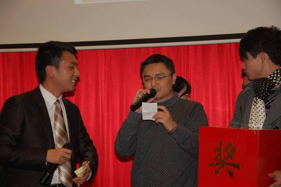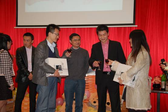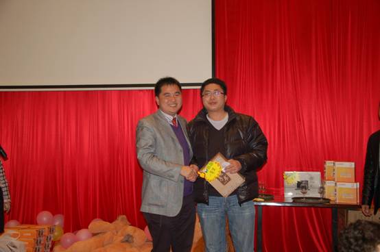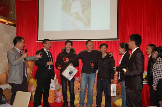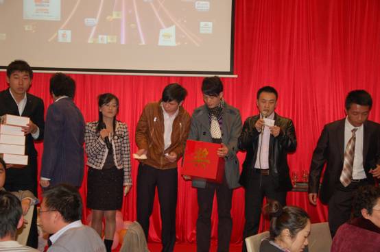 晚宴現(xiàn)場(chǎng)還同時(shí)進(jìn)行了抽獎(jiǎng)活動(dòng),獎(jiǎng)品尤其豐厚,總部產(chǎn)品事業(yè)部趙愛(ài)軍經(jīng)理。賈慶楓經(jīng)理上臺(tái)抽取四個(gè)特別獎(jiǎng),并為獲獎(jiǎng)?wù)哳C發(fā)獎(jiǎng)品;