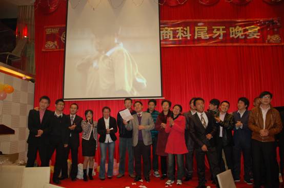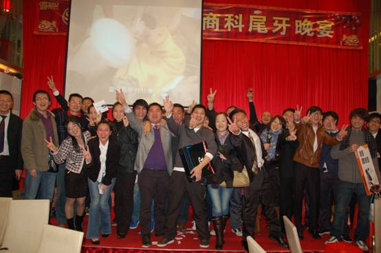 晚宴進(jìn)入最后高潮,商科各位公司同仁一起上臺(tái)答謝經(jīng)銷(xiāo)商朋友,并高唱<<朋友>>,在歌聲中緩緩落下帷幕。。。