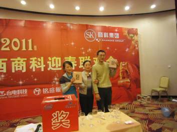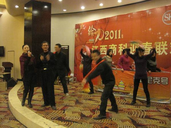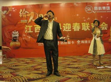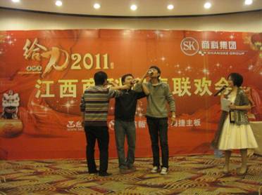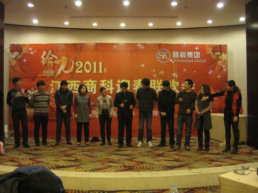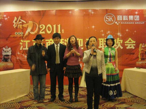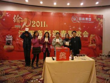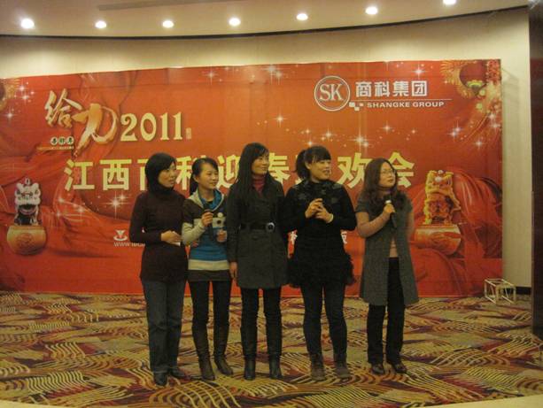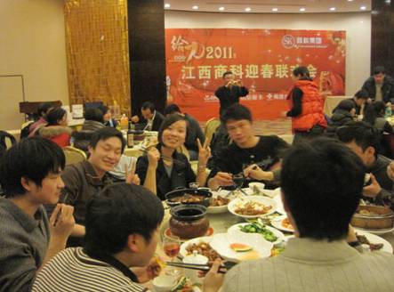 2011年元月28日,江西商科2011年春節(jié)聯(lián)歡會(huì)如期在南昌百瑞麗景18樓百瑞廳舉行。 聯(lián)歡會(huì)分為三部分:文藝表演、晚宴、抽獎(jiǎng)。 猛虎辭舊歲,玉兔迎新春;冰雪封不住青春的熱情,2011正隨春潮滾滾而來(lái),希望所有的同事能在兔年里心想事情,事事順利。