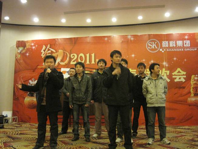 倉(cāng)儲(chǔ)部的節(jié)目,歌舞表演《纖夫的愛(ài)》,這個(gè)里面角色很齊嘛!除了兩位唱歌的外,還有兩位纖夫, 兩位妹妹,船里頭還有三個(gè)人物,也應(yīng)該算是妹妹了吧。 之前本來(lái)打算弄個(gè)木船的,后來(lái)想想,2011新的一年要有新的氣氛,我們就將把他變成了泰坦尼克號(hào)了, 希望我們公司所有同事和自己的愛(ài)人之間的感情既能像杰克和露絲那樣浪漫,有能像纖夫和妹妹那樣堅(jiān)定長(zhǎng)久。 本節(jié)目榮獲三等獎(jiǎng)。