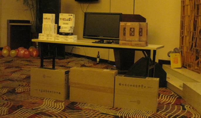 年會(huì)抽獎(jiǎng)品:液晶電視、顯示器、電子書(shū)、臺(tái)電數(shù)碼播放器、電話卡、臺(tái)電攝像頭。。。。。,很豐富呀,