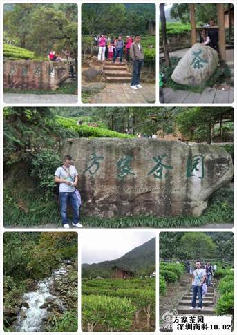 據當地導游介紹,“方家茶園”乃是香港無線電視臺《茶是故鄉濃》的外景拍攝地,因為賀州姑婆山良好地氣候和土質等因素,造就了無污染的高山云霧茶---方家茶葉;走進依偎在群山中的“方家茶園”時,呈現在眼前的是一起一伏、郁郁蔥蔥的茶葉在十月溫暖的陽光下綠波閃耀的美景。。。