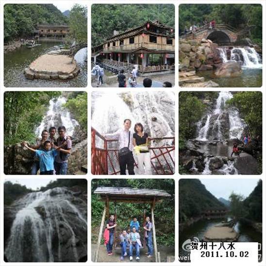 離開姑婆山,旅游大巴將我們帶到了“十八水景區”,未進景區就聽見潺潺溪水聲,原來又是一處山高林深.瀑布成群的清涼去處。。我們沿山路拾階而上,一路上大小瀑布不斷,好景美不勝收。。